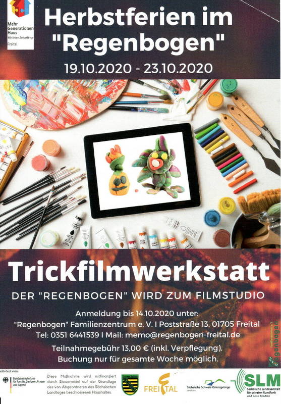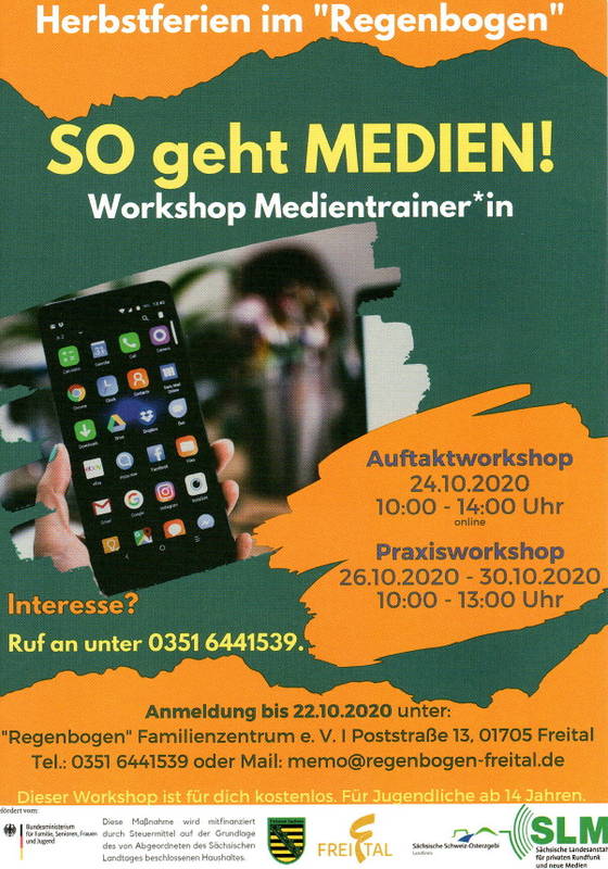 Gemeinsam mit dem Mehrgenerationenhaus „Regenbogen“ Freital hat sich kultur & medien 21 als Tandempartner gemeinsam auf die Ausschreibung themengebundener Medienkompetenzförderung 2019/2020 der Sächsischen Landesanstalt für privaten Rundfunk und neue Medien beteiligt und sich für den Wirkungskreis Freital beworben.