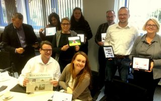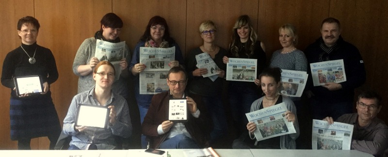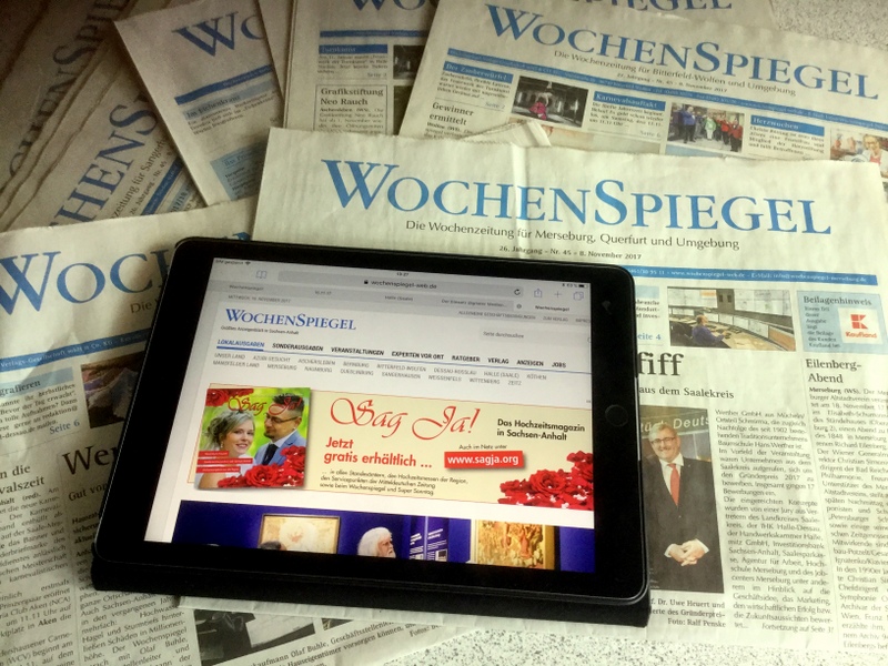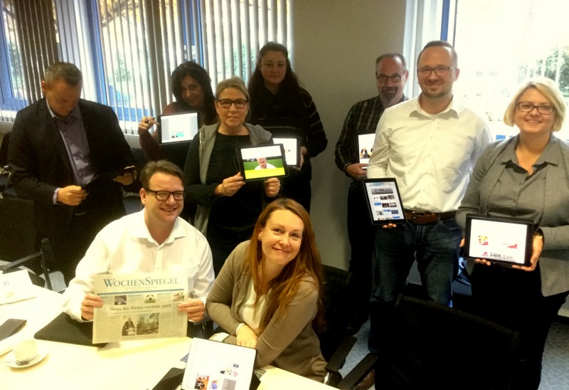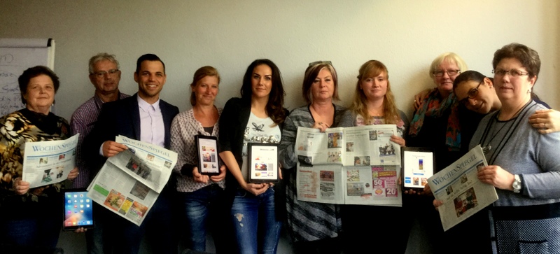 Täglich sind die Mitarbeiterinnen und Mitarbeiter des Wochenspiegels bzw. Supersonntags in Sachsen-Anhalt unterwegs und besuchen ihre Werbekundschaft. Hierfür haben sie viel Material dabei, um ihre Produkte und Anzeigemöglichkeiten darzustellen. Der Verlag geht nun mit der Zeit und stattete seine Mitarbeiter mit iPads aus. In den Schulungen erfuhren sie, dass sich mit den neuen Geräten nicht nur E-Mails abrufen lassen. Vielmehr dienende dazu den Alltag unterstützend zu gestalten und die Arbeitsabläufe zu vereinfachen. Thematisch ging es dabei um die professionelle Anwendung und Einrichtung von Dokumentpräsentationen sowie Browsern, schnelle Datenübertragung, das Anfertigen sowie Teilen von digitalen Depeschen, die Verwendung der Sprachsteuerung und vieles mehr.