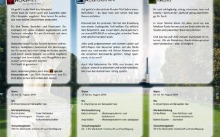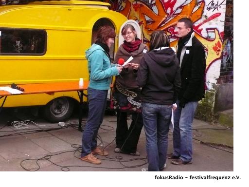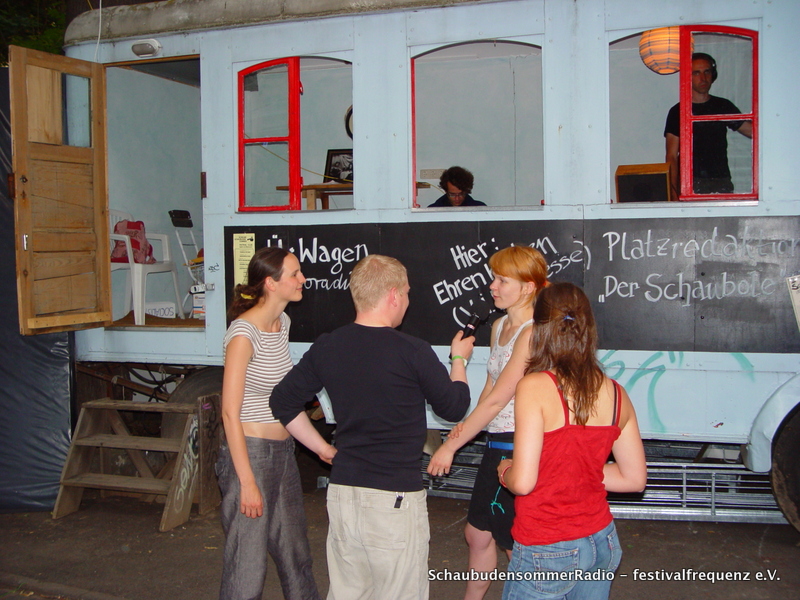 In den Jahren 2007 bis 2010 arbeite ich als Teil des festivalfrequenz e.V. an unterschiedlichen Mediencamps in Sachsen und Berlin. Vor allem waren es Veranstaltungsradios rund um die Themen Musik, Kultur und Politik. Wir begleiteten unter anderem das Populario-Festival bei Hoyerswerda, das Jugend-Politik-Festival Berlin08, das deutsch-polnische fokusFestival in Görlitz/Zgorzelec sowie das Licht-Klang-Festival transNATURALE am Bärwalder See mit einem drei- bis fünftägigem UKW-Radioprogramm.